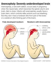The use of anencephalic infants as an organ source has been a hot button issue for years. Anencephaly is defined as “a central nervous system abnormality that is characterized by congenial absence of the forebrain, skull and scalp”. Infants with anencephaly do not typically live more than a few days. Death is certain in their case. Anencephaly can be determined as early as 12 weeks into the pregnancy at which point parents have the option of whether to abort the fetus or continue the pregnancy.
